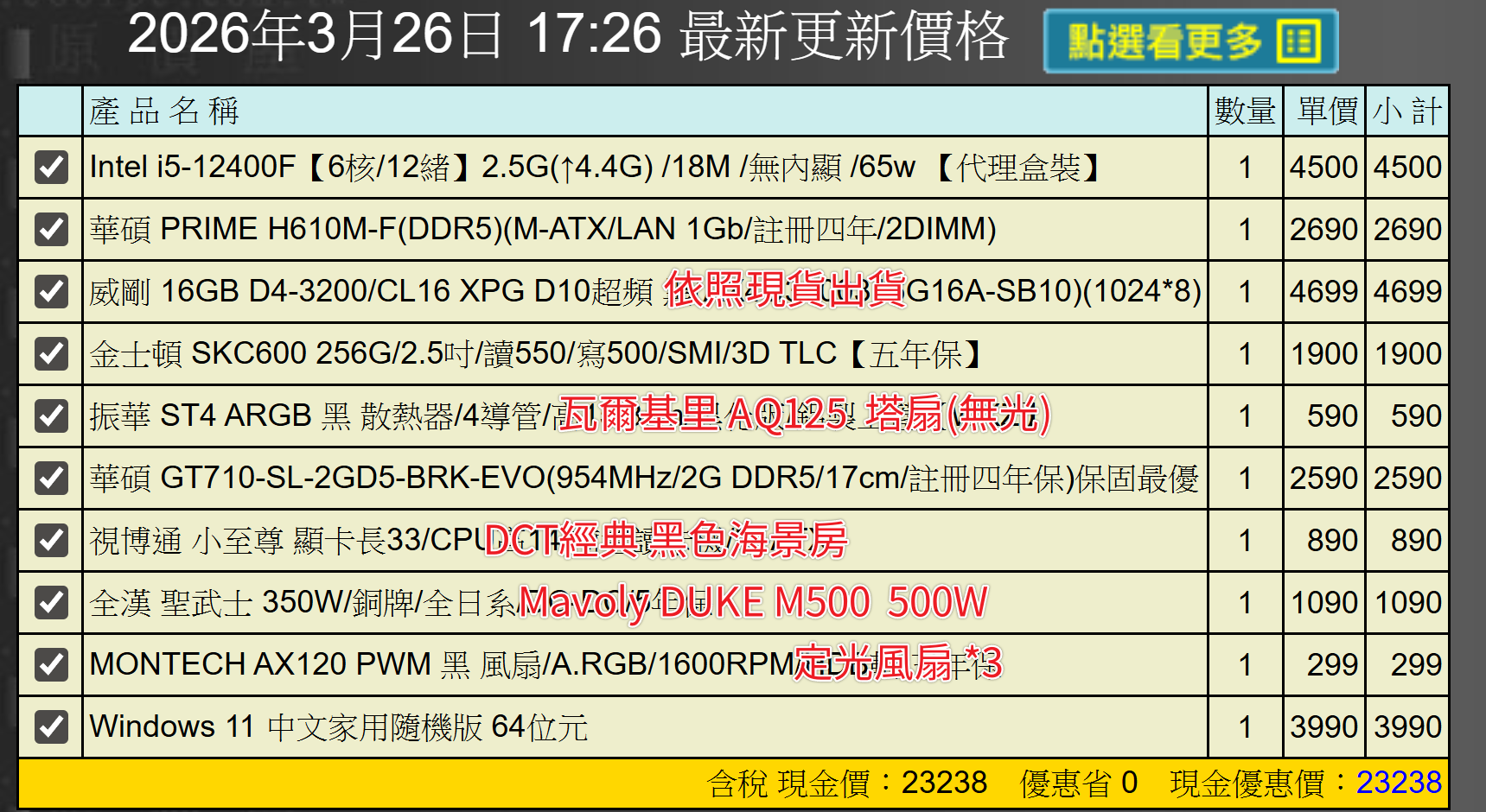 備註: 因電腦零件汰換很快 會根據情況因缺貨或時關係有可能 更換/升級 同等價值不同廠牌零件