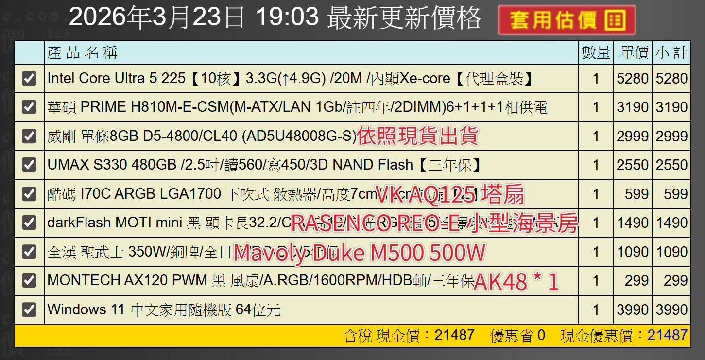 備註: 因電腦零件汰換很快 會根據情況因缺貨或時關係有可能 更換/升級 同等價值不同廠牌零件