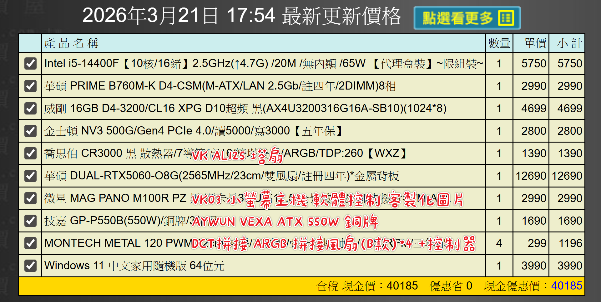 備註: 因電腦零件汰換很快 會根據情況因缺貨或時關係有可能 更換/升級 同等價值不同廠牌零件