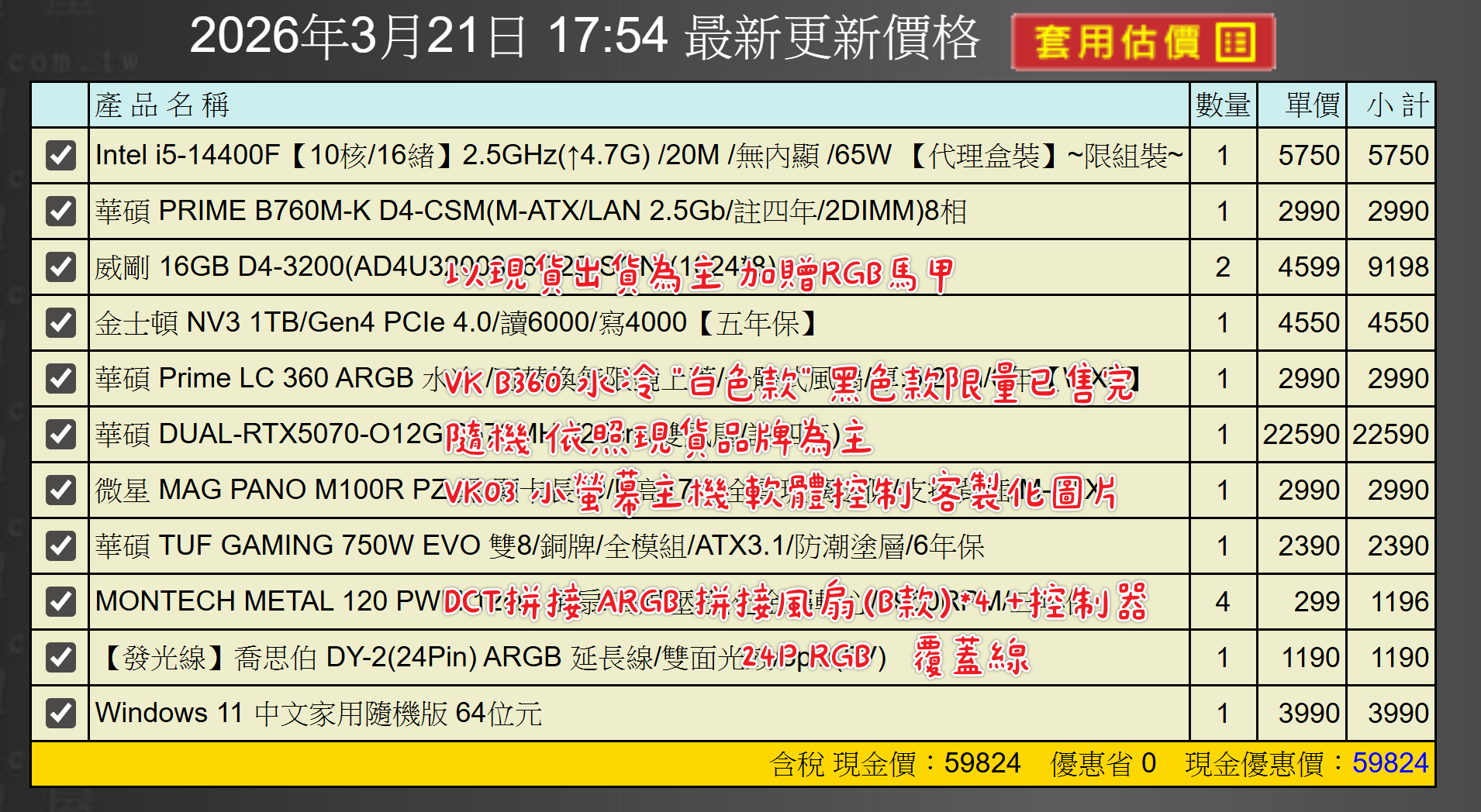 備註因電腦零件汰換很快 會根據情況因缺貨或時關係有可能 更換/升級 同等價值不同廠牌零件