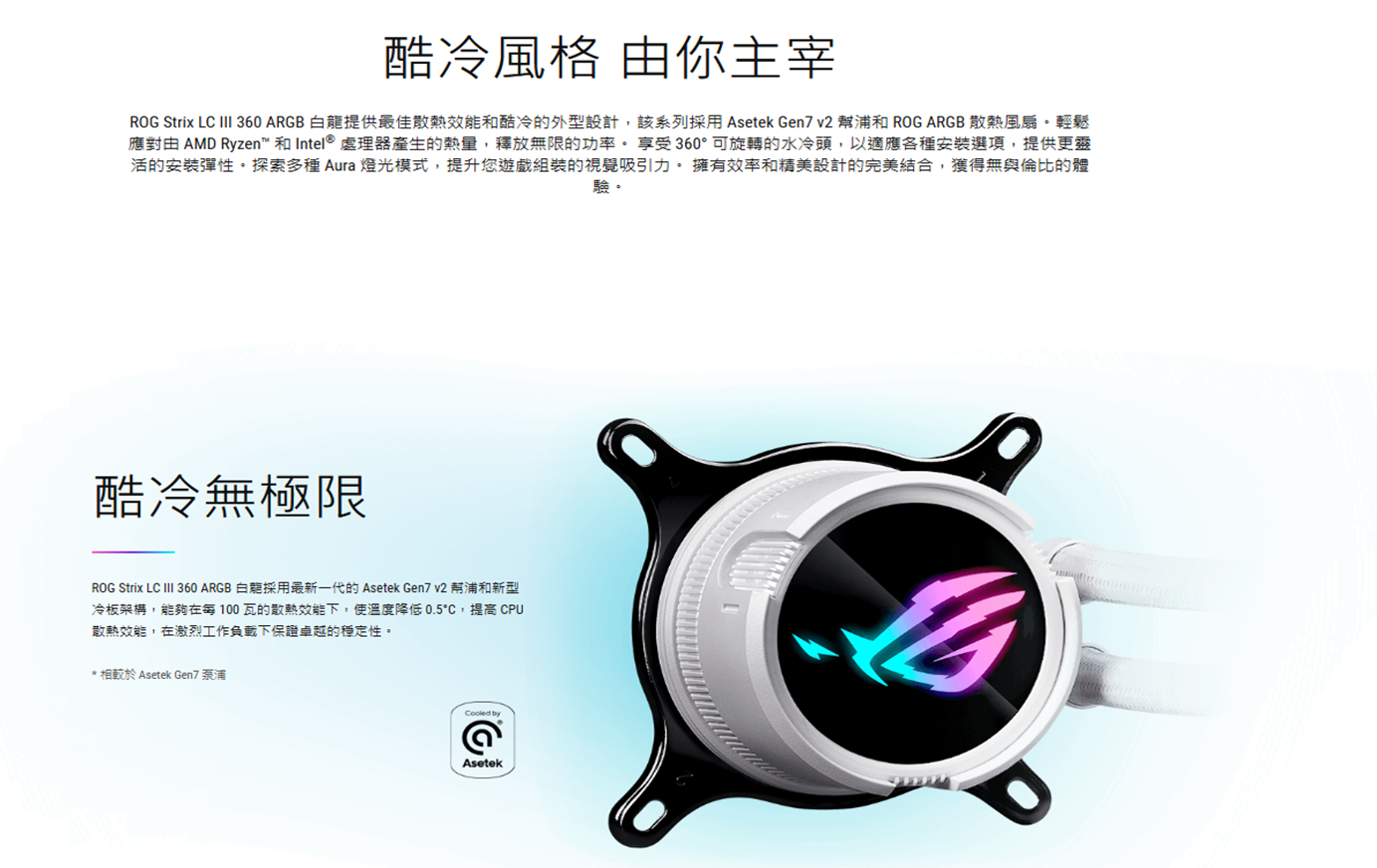 全新的 Asetek Gen7 V2 幫浦,搭載強大的馬達,提供極佳散熱性能。