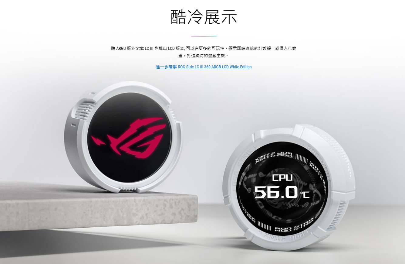 2.1 吋的 IPS LCD,具有 360 度可旋轉的圖形顯示功能,可以顯示系統狀態、時間以及更多自定義。