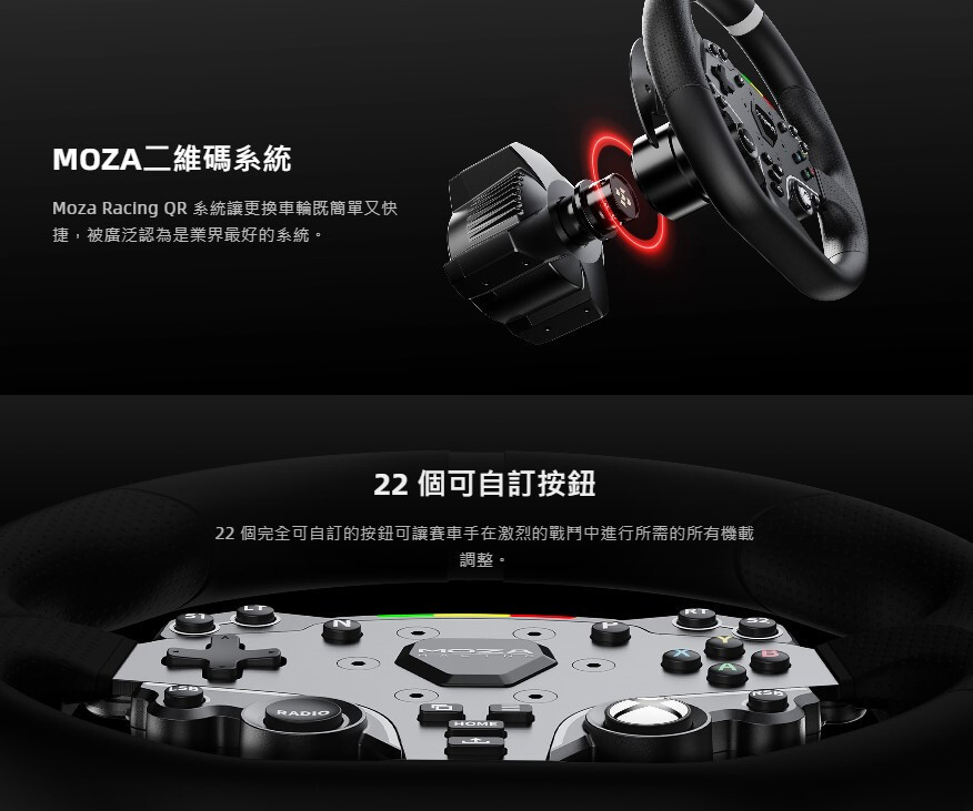 適用於 Xbox 的 MOZA ESX 方向盤將官方 Xbox 授權與 MOZA Racing 的直接驅動技術相結合,提供無與倫比的賽車體驗。採用堅固的鋁合金輪圈和防滑、防汗 ISF PU 握把設計,確保在激烈的比賽中提供最大的耐用性和舒適度。這款滾輪具有 22 個可自訂按鈕,可實現完全控制和即時調整,而完全可調的 RPM LED 燈則為您的設定增添了動態。憑藉業界領先的 MOZA 快速釋放系統,更換輪圈快速且輕鬆,使其成為專業賽車手的理想選擇。