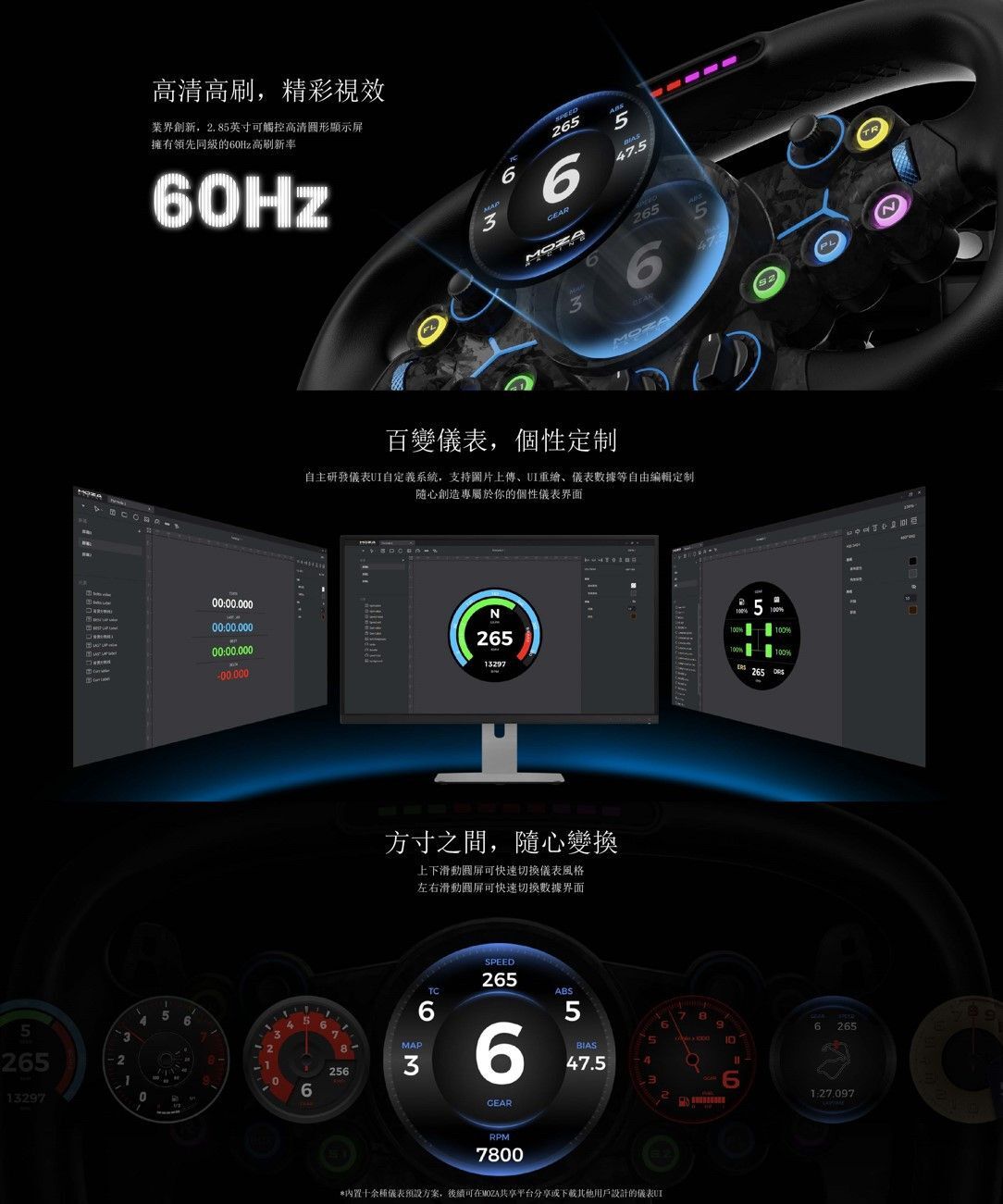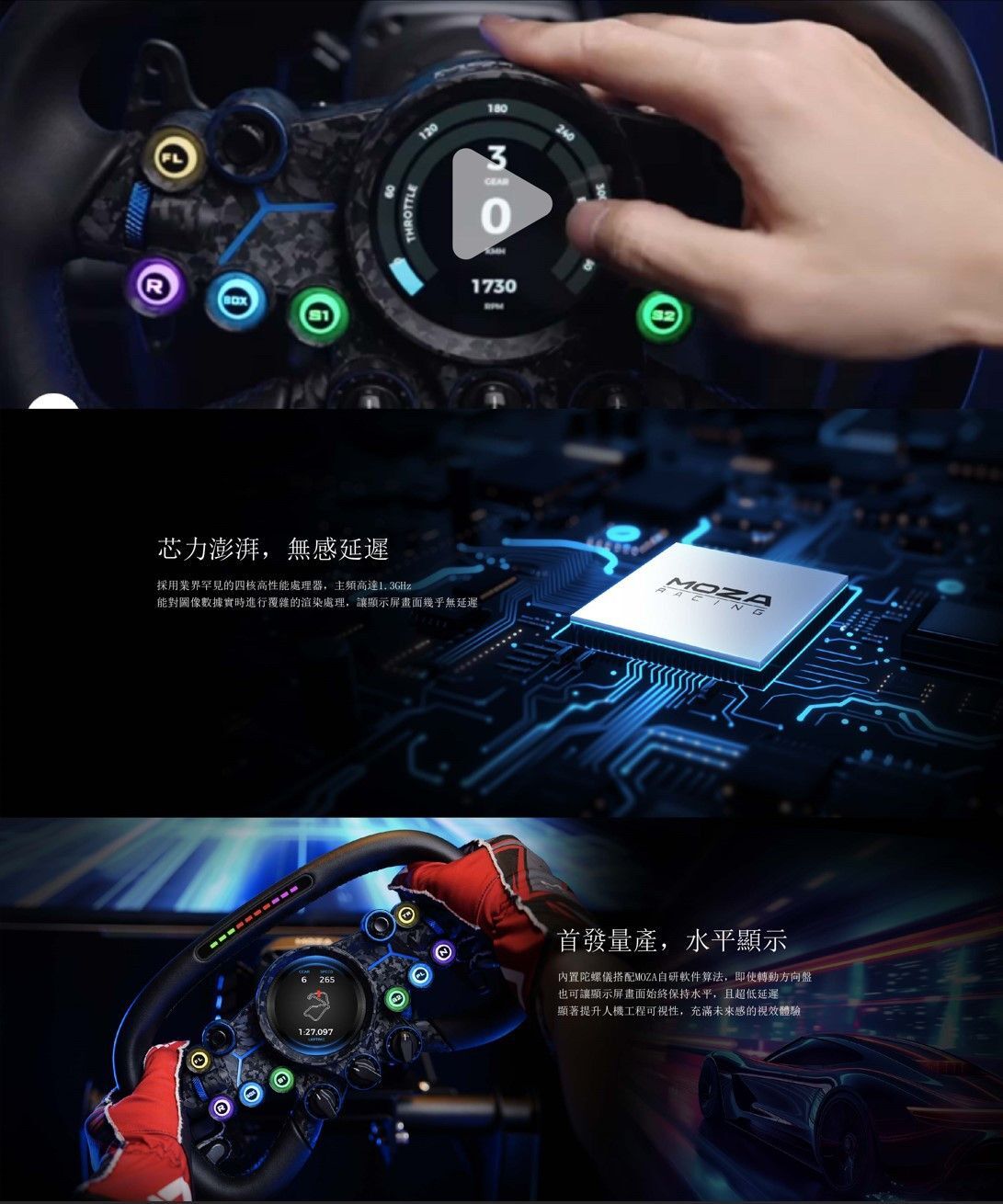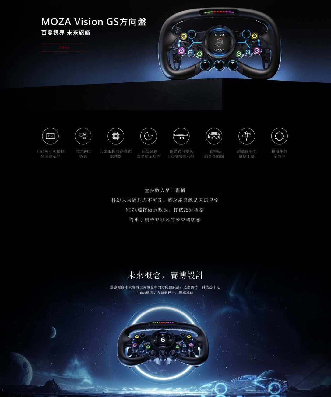 使用 MOZA Vision GS 方向盤體驗無與倫比的控制和未來主義設計。它的尺寸為 310 毫米,配備 2.85 吋高清圓形觸控螢幕、可自訂的 UI 和用於即時顯示渲染的四核心處理器。它採用航空級鋁和碳纖維製成,結構堅固,並配有手工縫製的超細纖維皮革握把。此方向盤包括頂部安裝的 RPM 指示器、短行程 RGB 按鈕和 72 個可編程輸入。它與所有 MOZA 底座和第三方系統相容,透過無線和導電滑環提供無縫連接。使用 MOZA Vision GS 方向盤提升您的賽車水平。