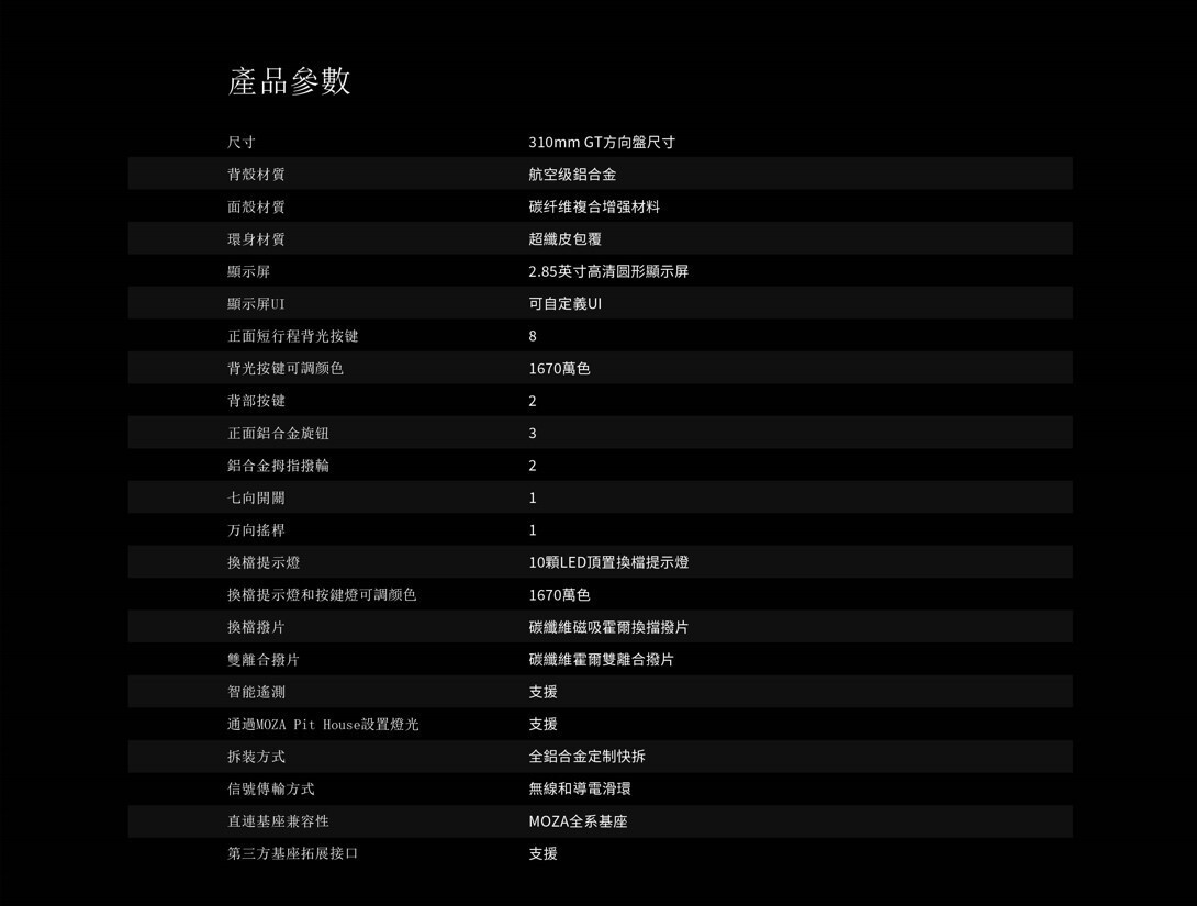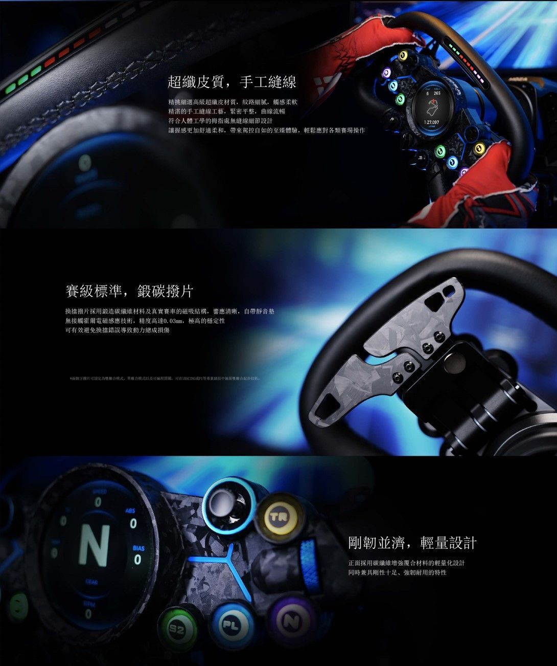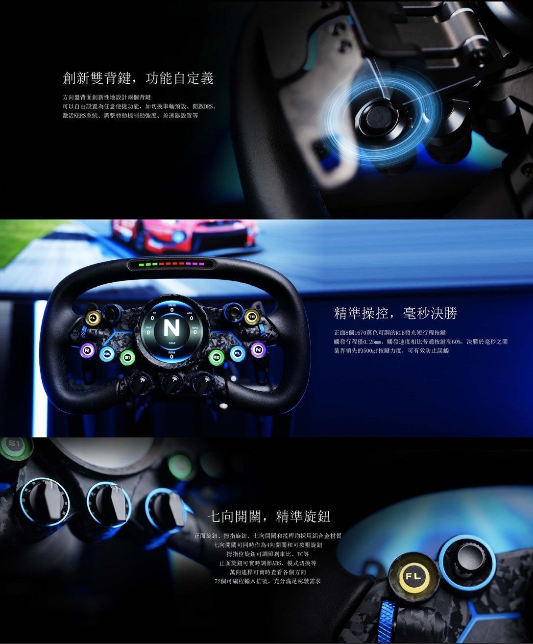 使用 MOZA Vision GS 方向盤體驗無與倫比的控制和未來主義設計。它的尺寸為 310 毫米,配備 2.85 吋高清圓形觸控螢幕、可自訂的 UI 和用於即時顯示渲染的四核心處理器。它採用航空級鋁和碳纖維製成,結構堅固,並配有手工縫製的超細纖維皮革握把。此方向盤包括頂部安裝的 RPM 指示器、短行程 RGB 按鈕和 72 個可編程輸入。它與所有 MOZA 底座和第三方系統相容,透過無線和導電滑環提供無縫連接。使用 MOZA Vision GS 方向盤提升您的賽車水平。