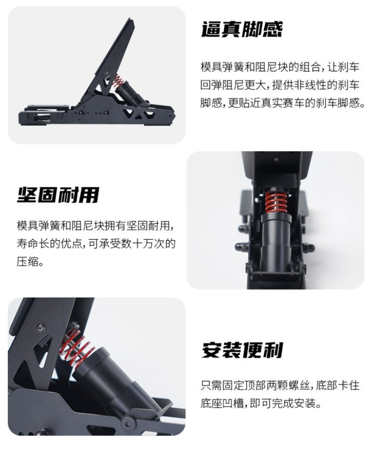 .真實的踏板感覺——彈簧和阻尼塊的組合提供了更高的製動阻力,並提供了更進步和真實的踏板感覺。