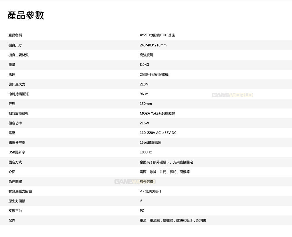 關於 MOZA 「AY210 力回饋 YOKE 基座」