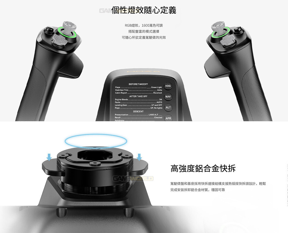 雙引擎推力控制器、精密踏板、飛行搖桿到全新設計的操縱桿