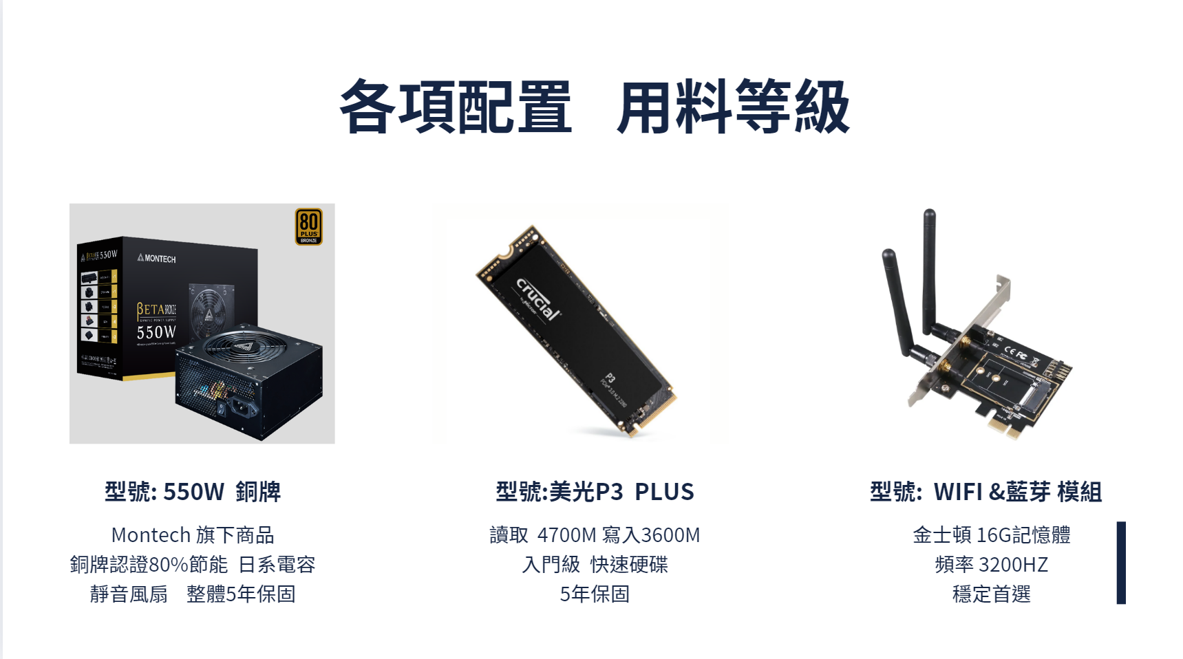 備註: 因電腦零件汰換很快 會根據情況因缺貨或時關係有可能 更換/升級 同等價值不同廠牌零件