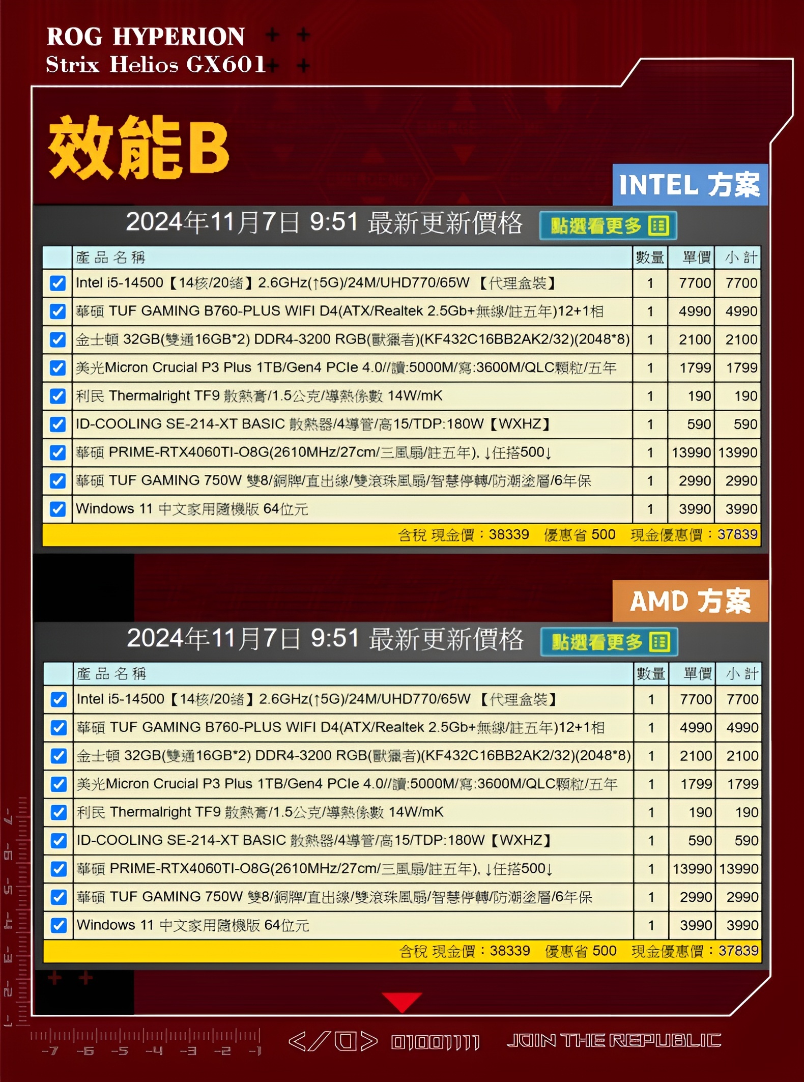 備註: 因電腦零件汰換很快 會根據情況因缺貨或時關係有可能 更換/升級 同等價值不同廠牌零件
