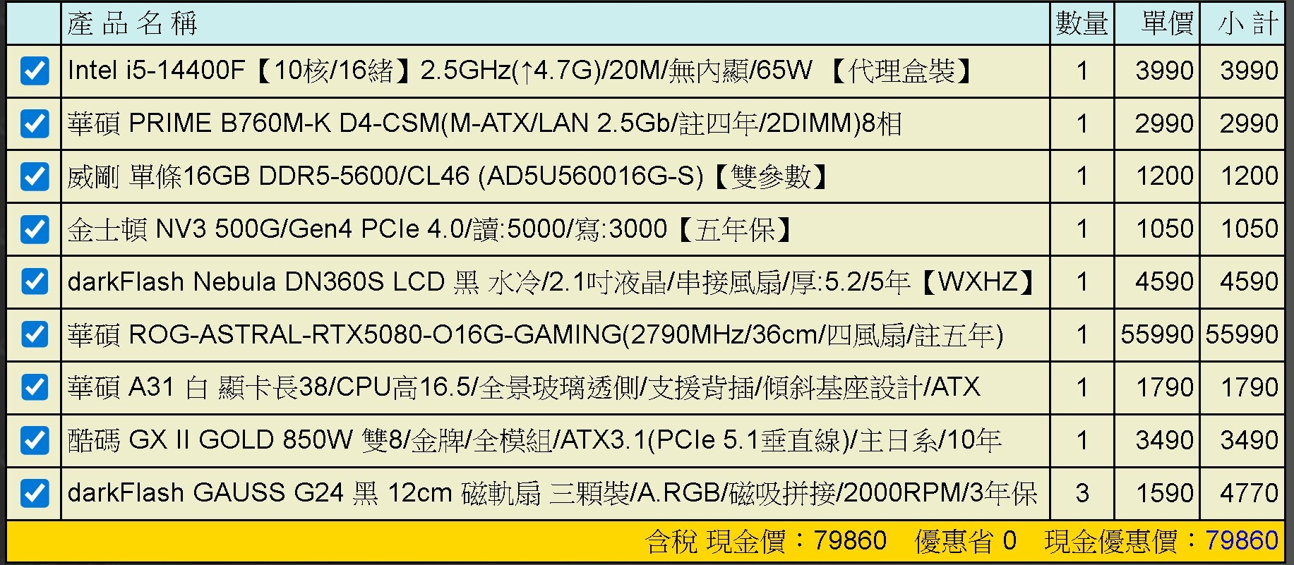 備註: 因電腦零件汰換很快 會根據情況因缺貨或時關係有可能 更換/升級 同等價值不同廠牌零件