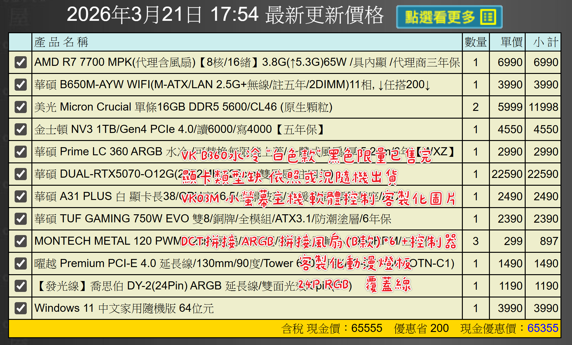 備註: 因電腦零件汰換很快 會根據情況因缺貨或時關係有可能 更換/升級 同等價值不同廠牌零件