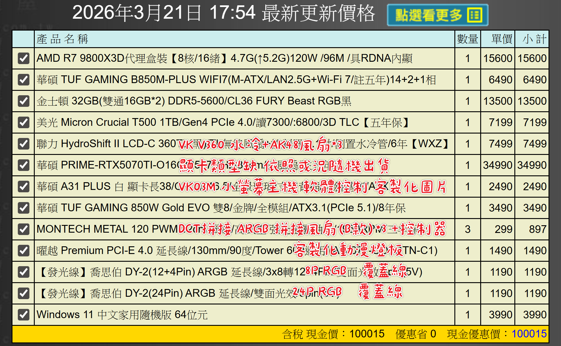 備註: 因電腦零件汰換很快 會根據情況因缺貨或時關係有可能 更換/升級 同等價值不同廠牌零件