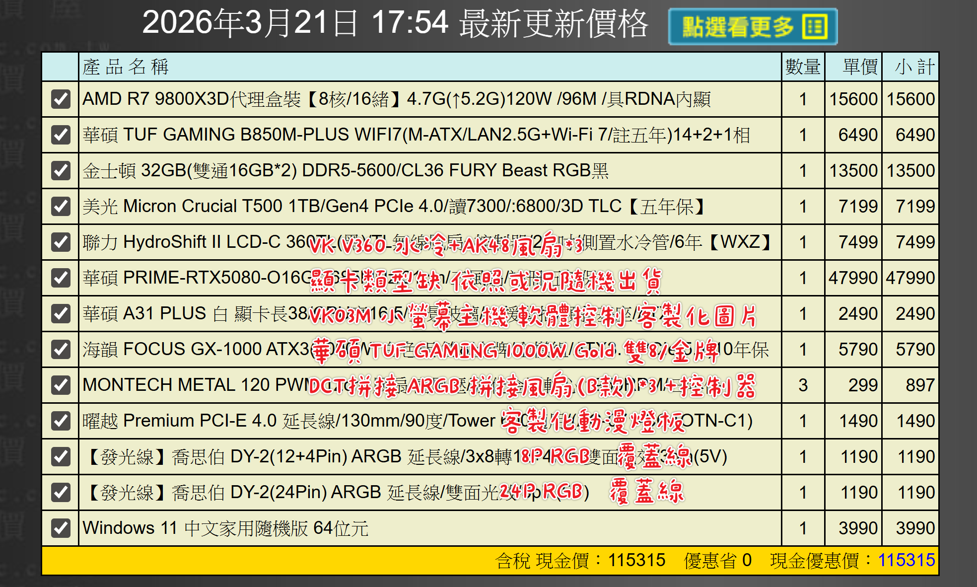 備註: 因電腦零件汰換很快 會根據情況因缺貨或時關係有可能 更換/升級 同等價值不同廠牌零件