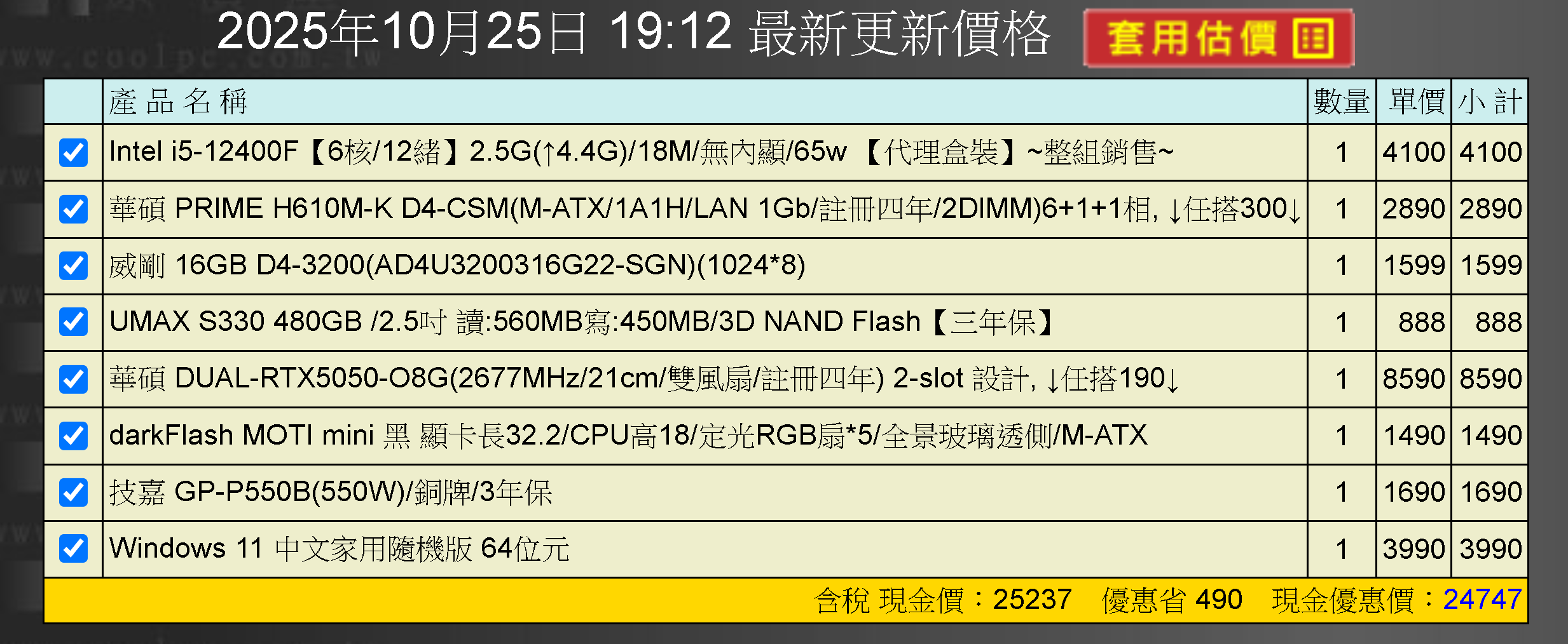 備註: 因電腦零件汰換很快 會根據情況因缺貨或時關係有可能 更換/升級 同等價值不同廠牌零件
