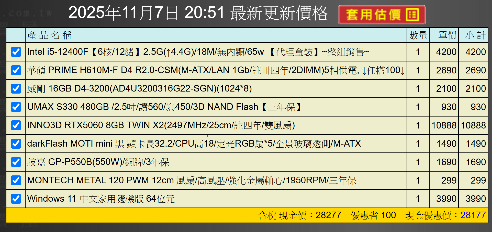 備註: 因電腦零件汰換很快 會根據情況因缺貨或時關係有可能 更換/升級 同等價值不同廠牌零件