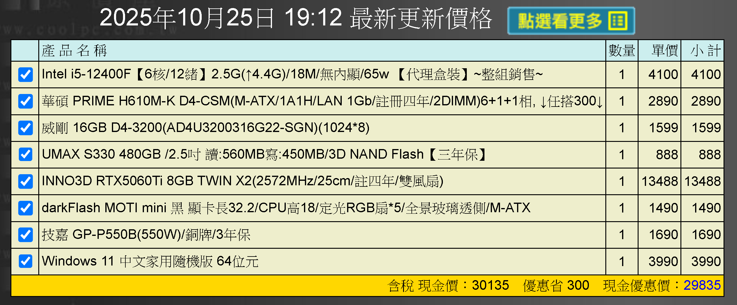 備註: 因電腦零件汰換很快 會根據情況因缺貨或時關係有可能 更換/升級 同等價值不同廠牌零件