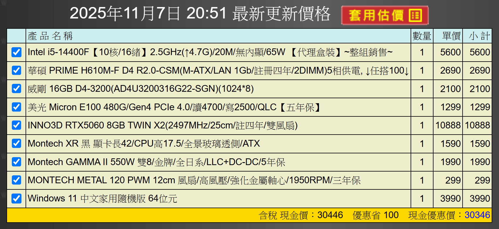 備註: 因電腦零件汰換很快 會根據情況因缺貨或時關係有可能 更換/升級 同等價值不同廠牌零件