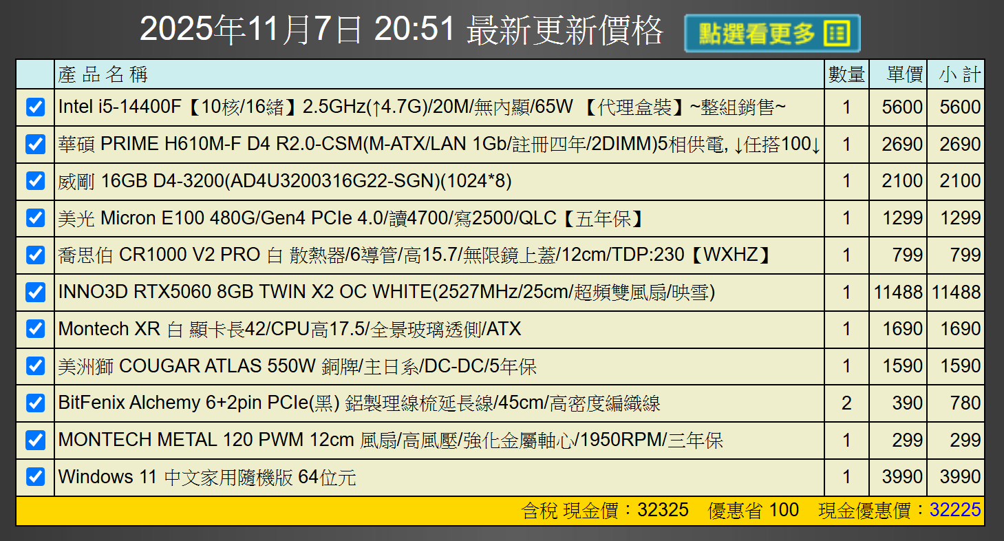 備註: 因電腦零件汰換很快 會根據情況因缺貨或時關係有可能 更換/升級 同等價值不同廠牌零件