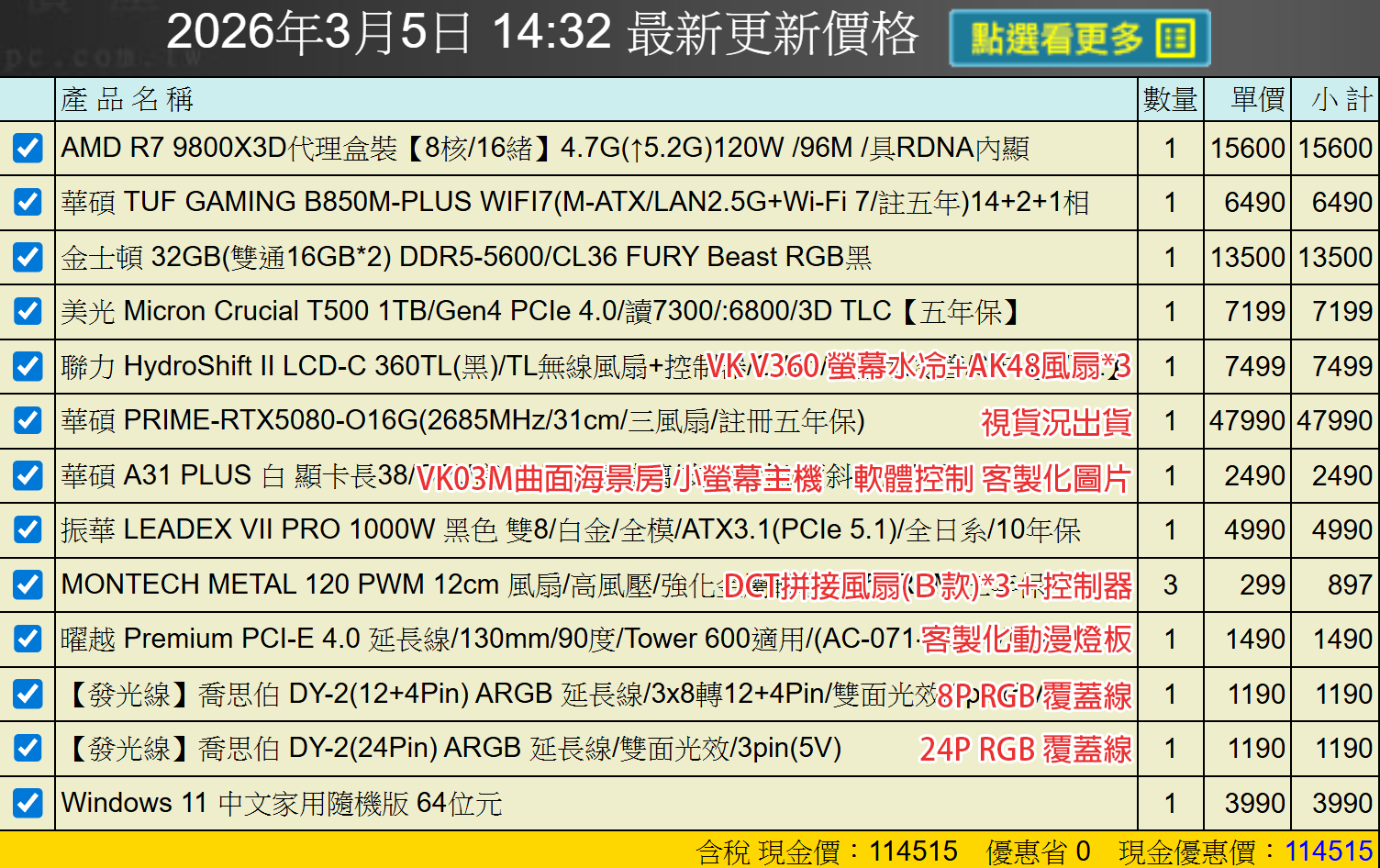 備註: 因電腦零件汰換很快 會根據情況因缺貨或時關係有可能 更換/升級 同等價值不同廠牌零件
