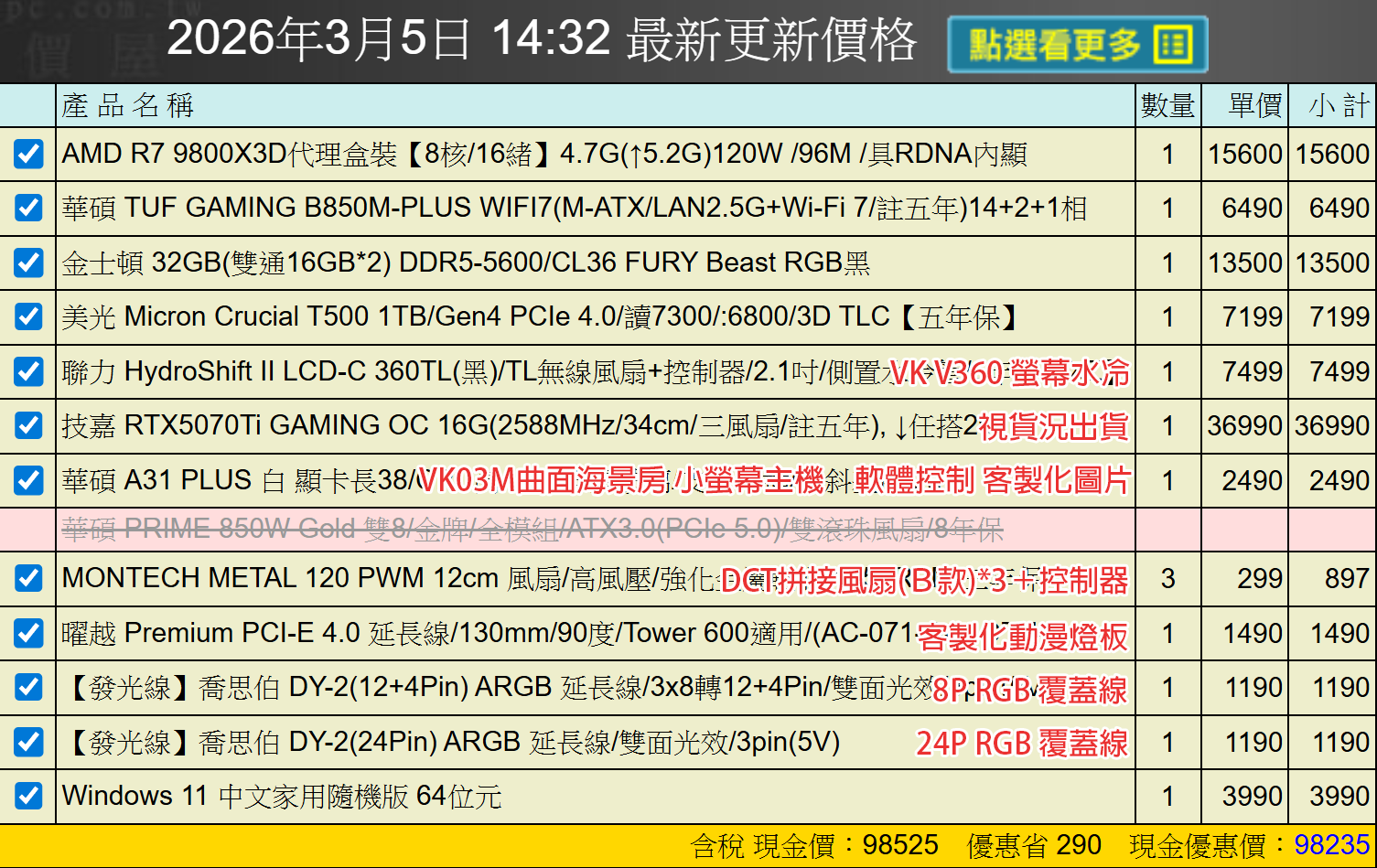 備註: 因電腦零件汰換很快 會根據情況因缺貨或時關係有可能 更換/升級 同等價值不同廠牌零件