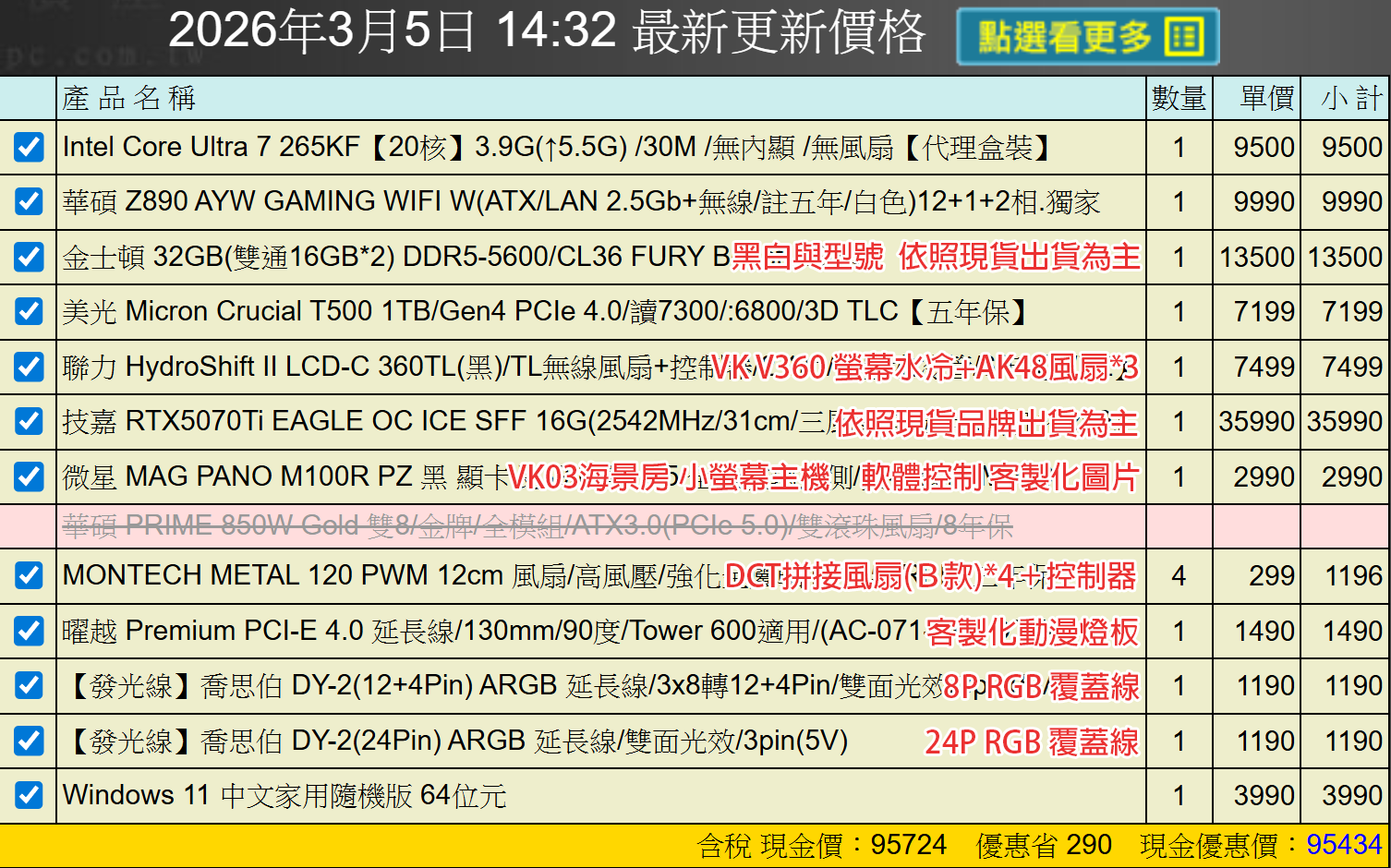 備註: 因電腦零件汰換很快 會根據情況因缺貨或時關係有可能 更換/升級 同等價值不同廠牌零件