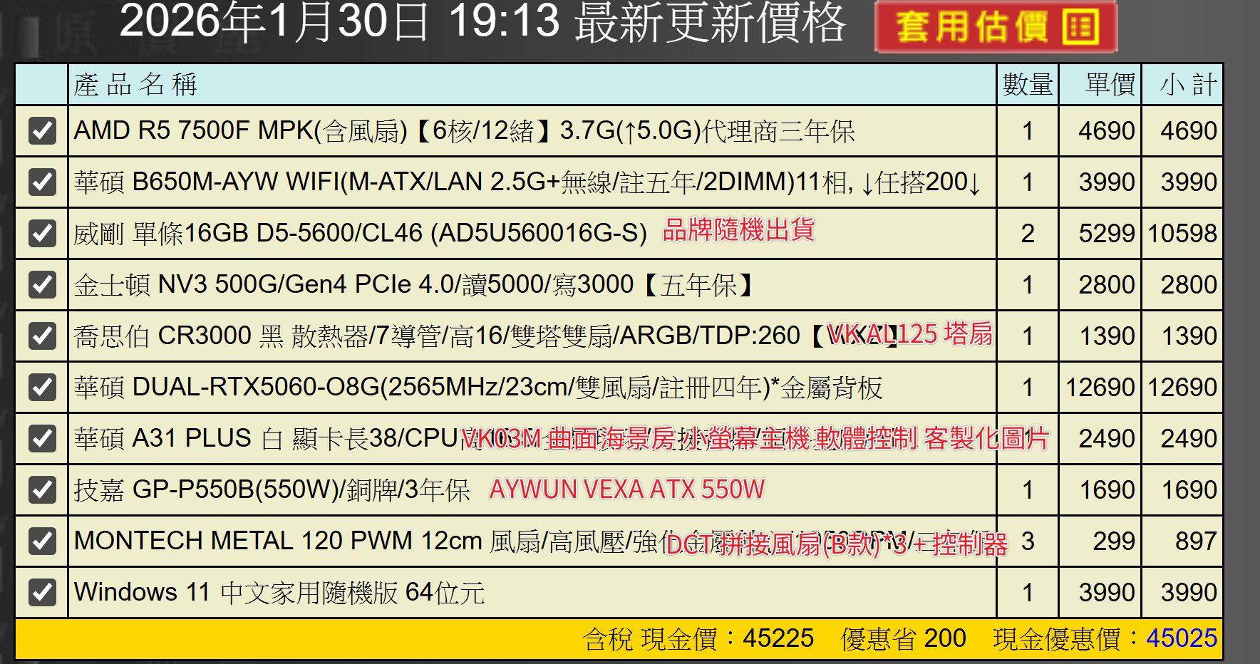 備註: 因電腦零件汰換很快 會根據情況因缺貨或時關係有可能 更換/升級 同等價值不同廠牌零件