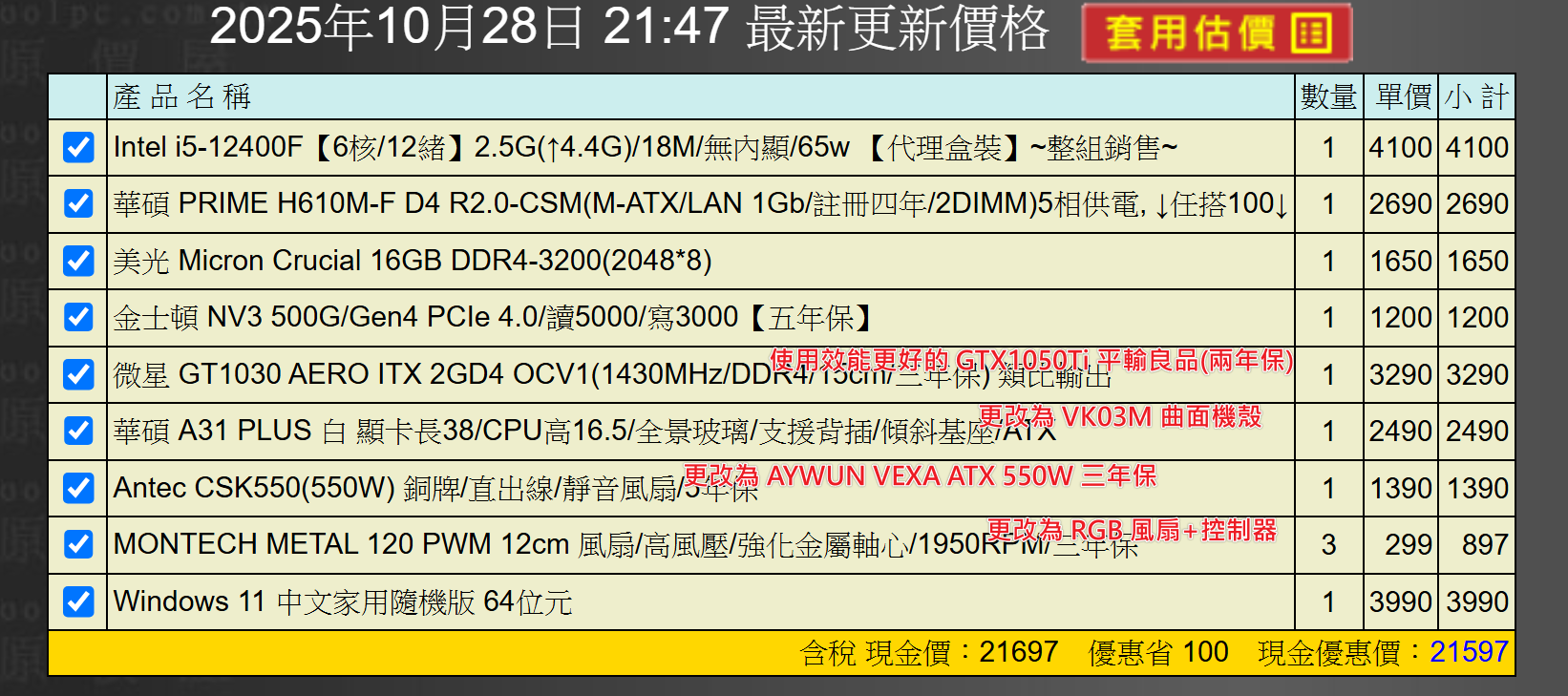 備註因電腦零件汰換很快 會根據情況因缺貨或時關係有可能 更換/升級 同等價值不同廠牌零件