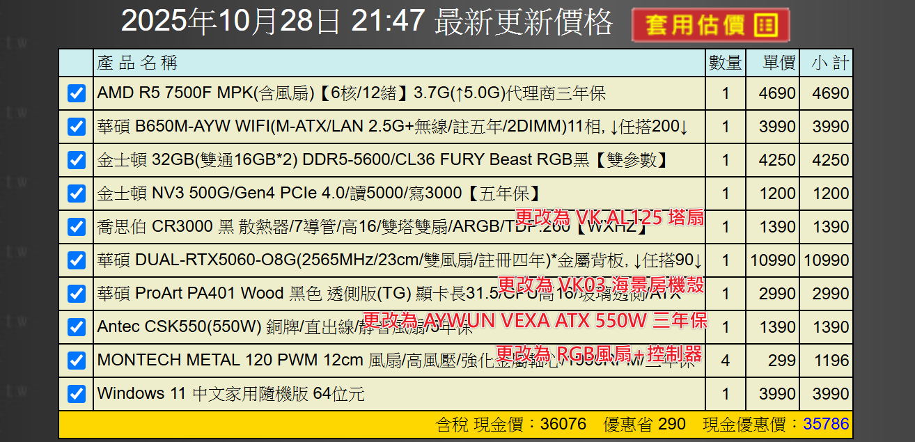 備註: 因電腦零件汰換很快 會根據情況因缺貨或時關係有可能 更換/升級 同等價值不同廠牌零件
