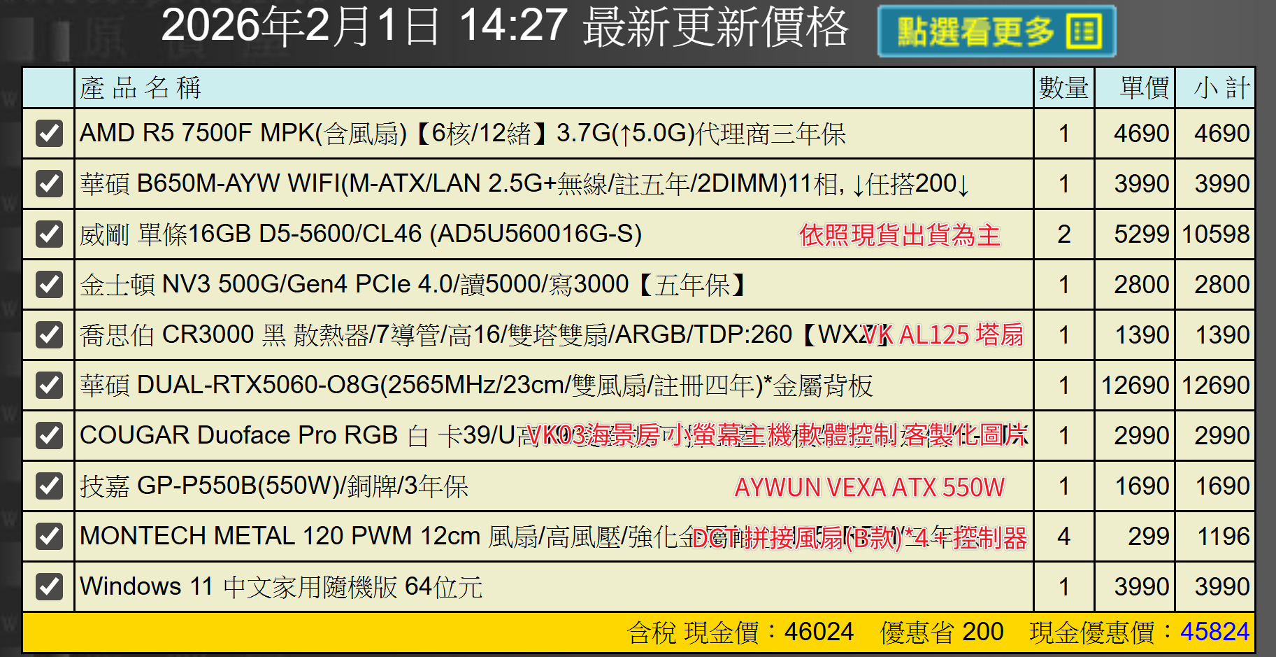 備註因電腦零件汰換很快 會根據情況因缺貨或時關係有可能 更換/升級 同等價值不同廠牌零件