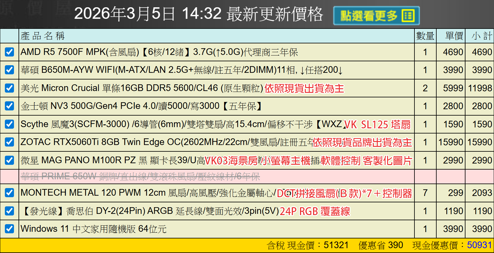 備註: 因電腦零件汰換很快 會根據情況因缺貨或時關係有可能 更換/升級 同等價值不同廠牌零件