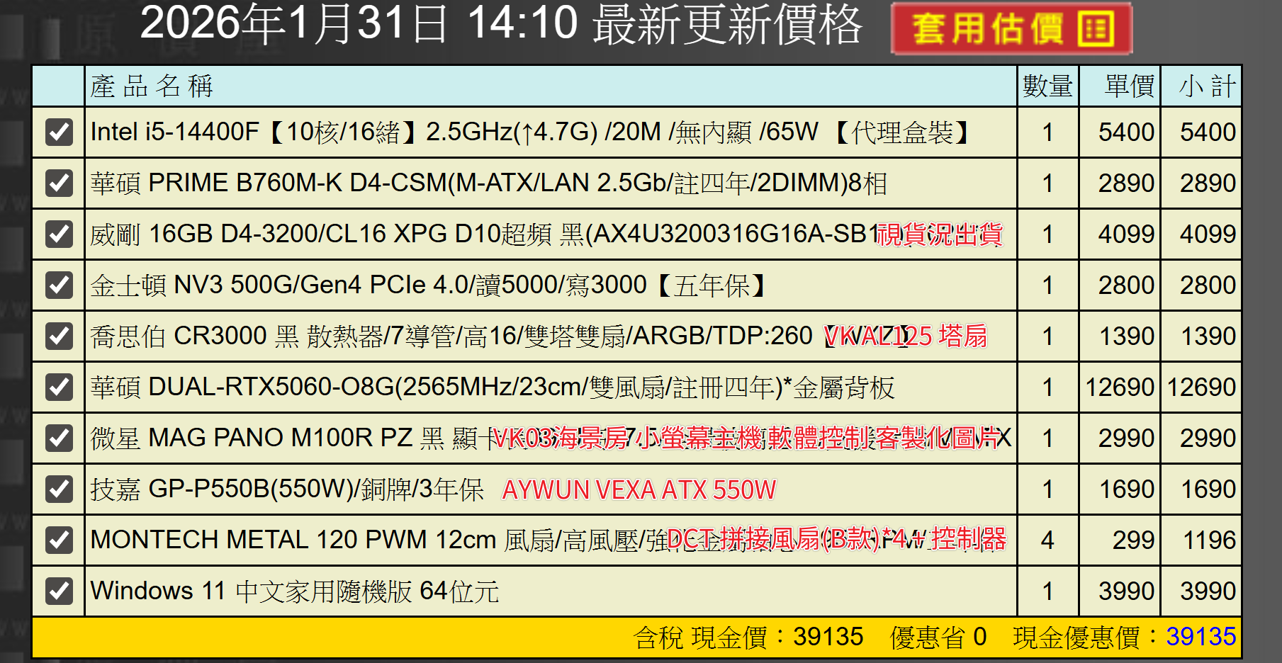 備註因電腦零件汰換很快 會根據情況因缺貨或時關係有可能 更換/升級 同等價值不同廠牌零件