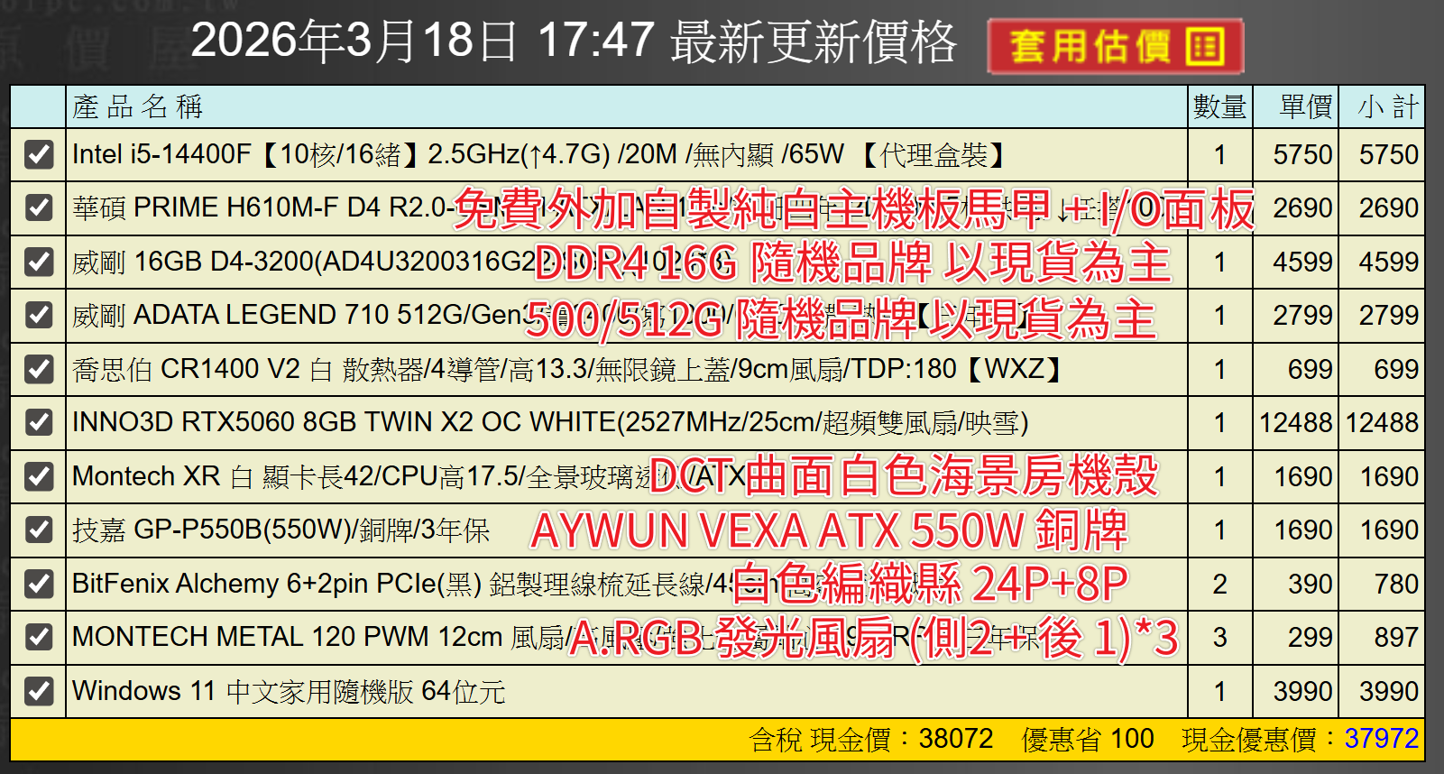 備註: 因電腦零件汰換很快 會根據情況因缺貨或時關係有可能 更換/升級 同等價值不同廠牌零件