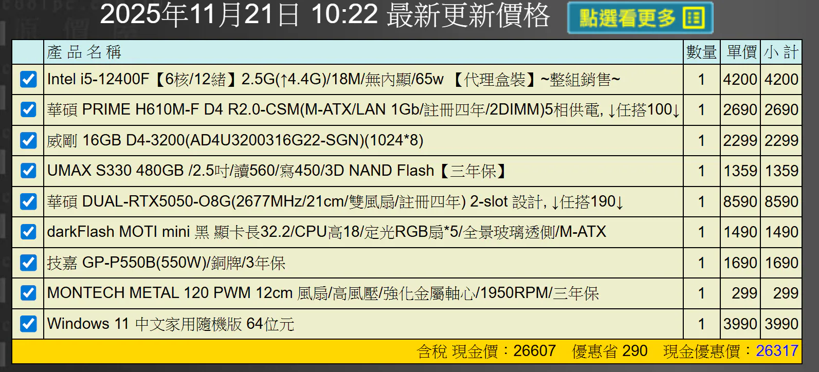 備註: 因電腦零件汰換很快 會根據情況因缺貨或時關係有可能 更換/升級 同等價值不同廠牌零件