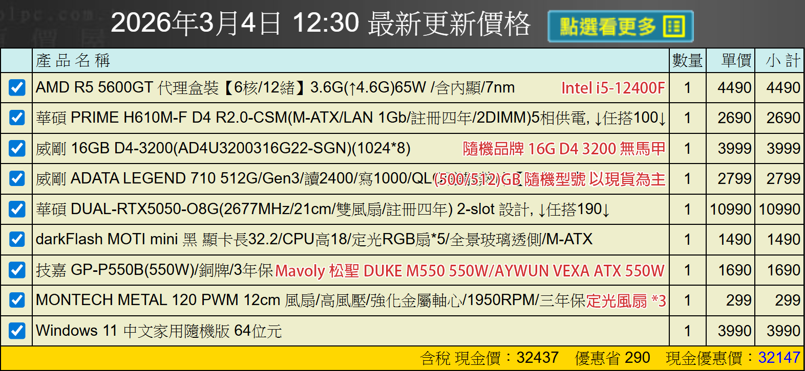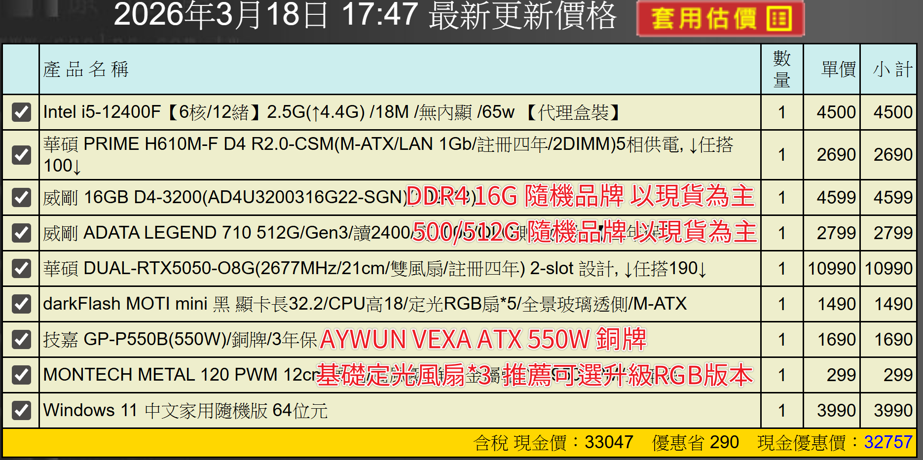 備註: 因電腦零件汰換很快 會根據情況因缺貨或時關係有可能 更換/升級 同等價值不同廠牌零件