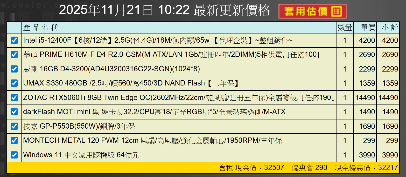 備註: 因電腦零件汰換很快 會根據情況因缺貨或時關係有可能 更換/升級 同等價值不同廠牌零件