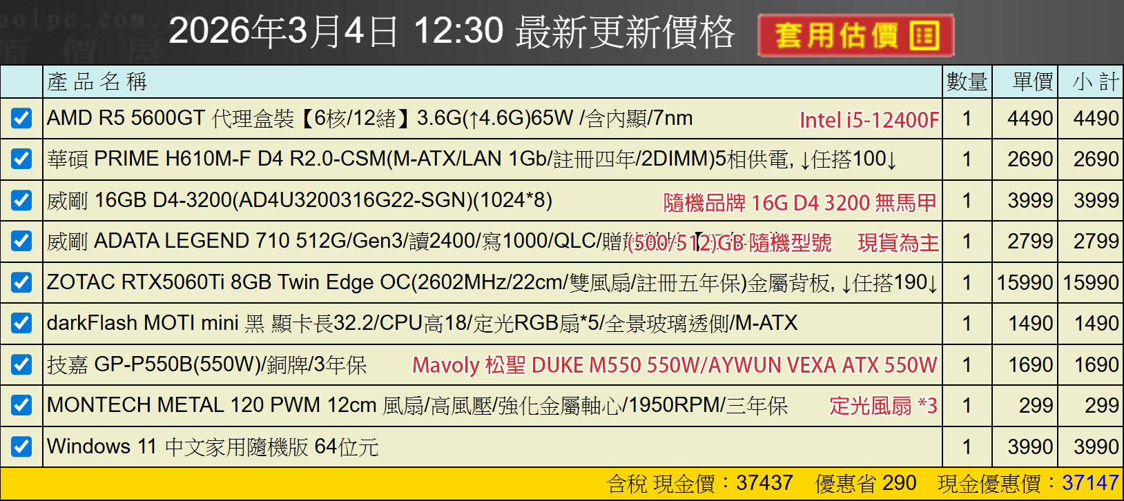 備註: 因電腦零件汰換很快 會根據情況因缺貨或時關係有可能 更換/升級 同等價值不同廠牌零件