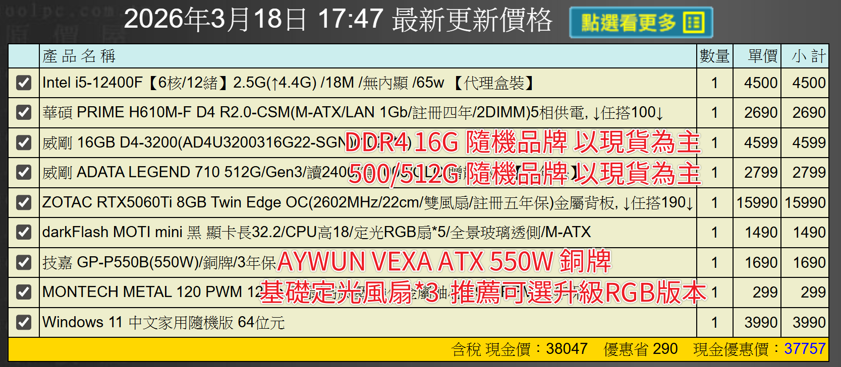 備註因電腦零件汰換很快 會根據情況因缺貨或時關係有可能 更換/升級 同等價值不同廠牌零件