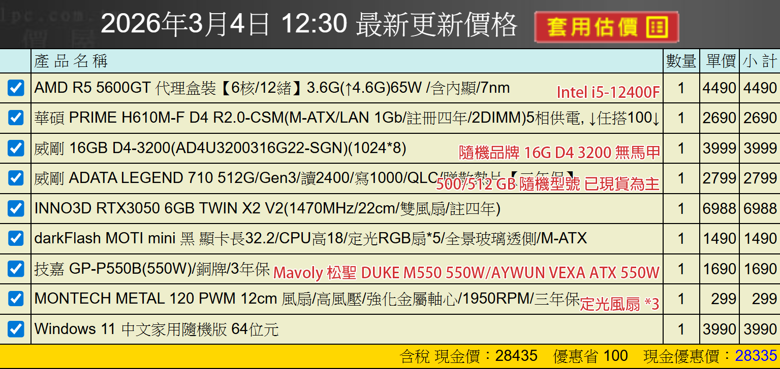 備註: 因電腦零件汰換很快 會根據情況因缺貨或時關係有可能 更換/升級 同等價值不同廠牌零件