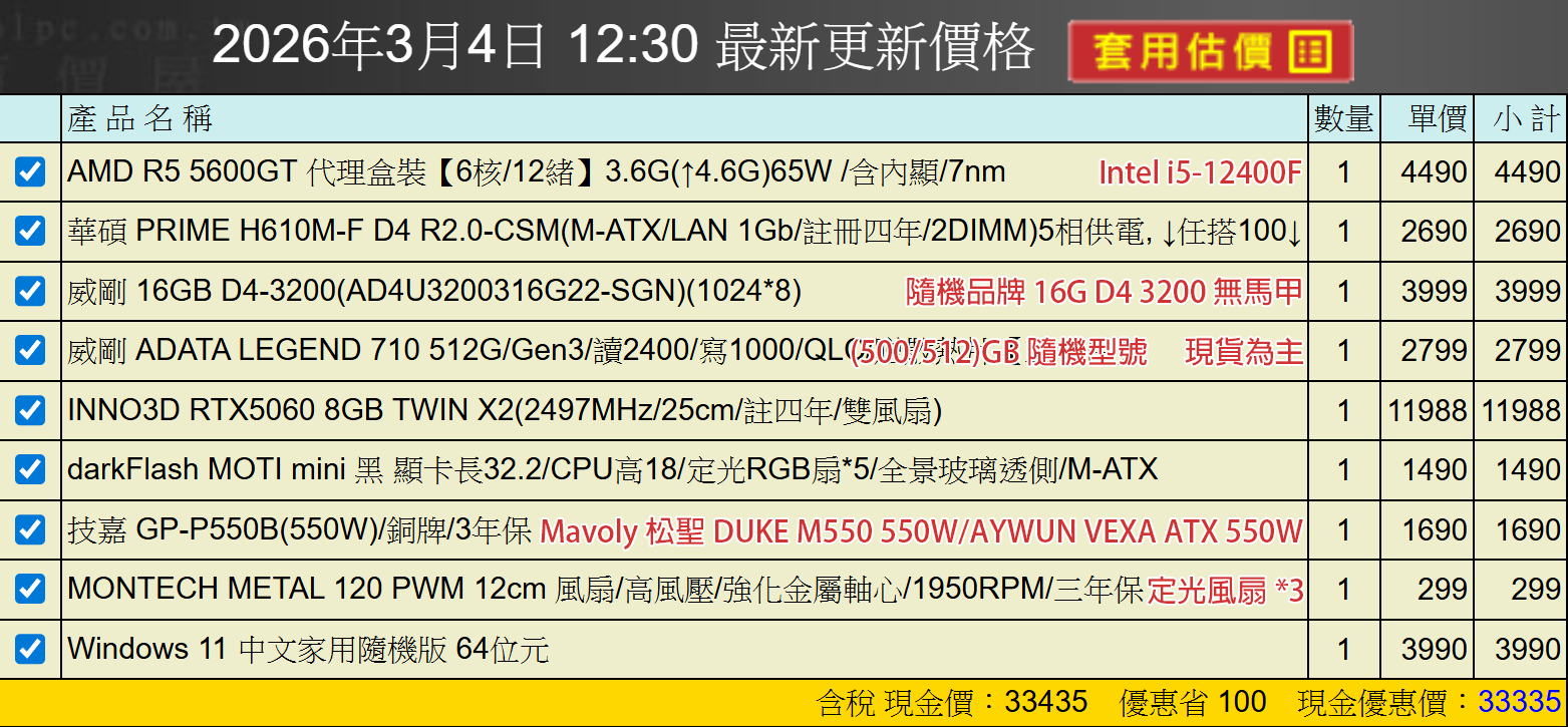 備註: 因電腦零件汰換很快 會根據情況因缺貨或時關係有可能 更換/升級 同等價值不同廠牌零件