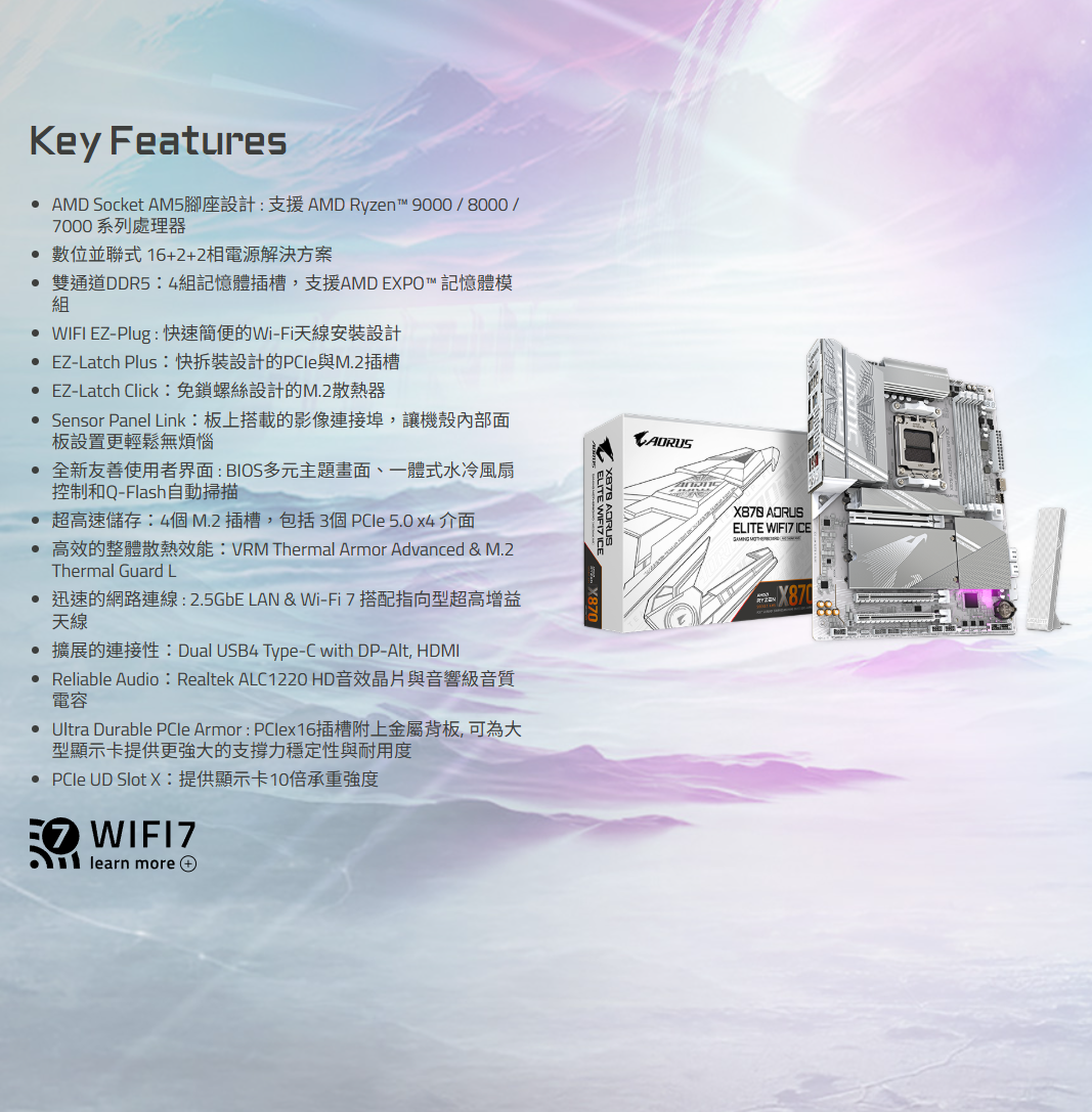 ATX/LAN2.5G+Wi-Fi 7/冰魄白 16+2+2相