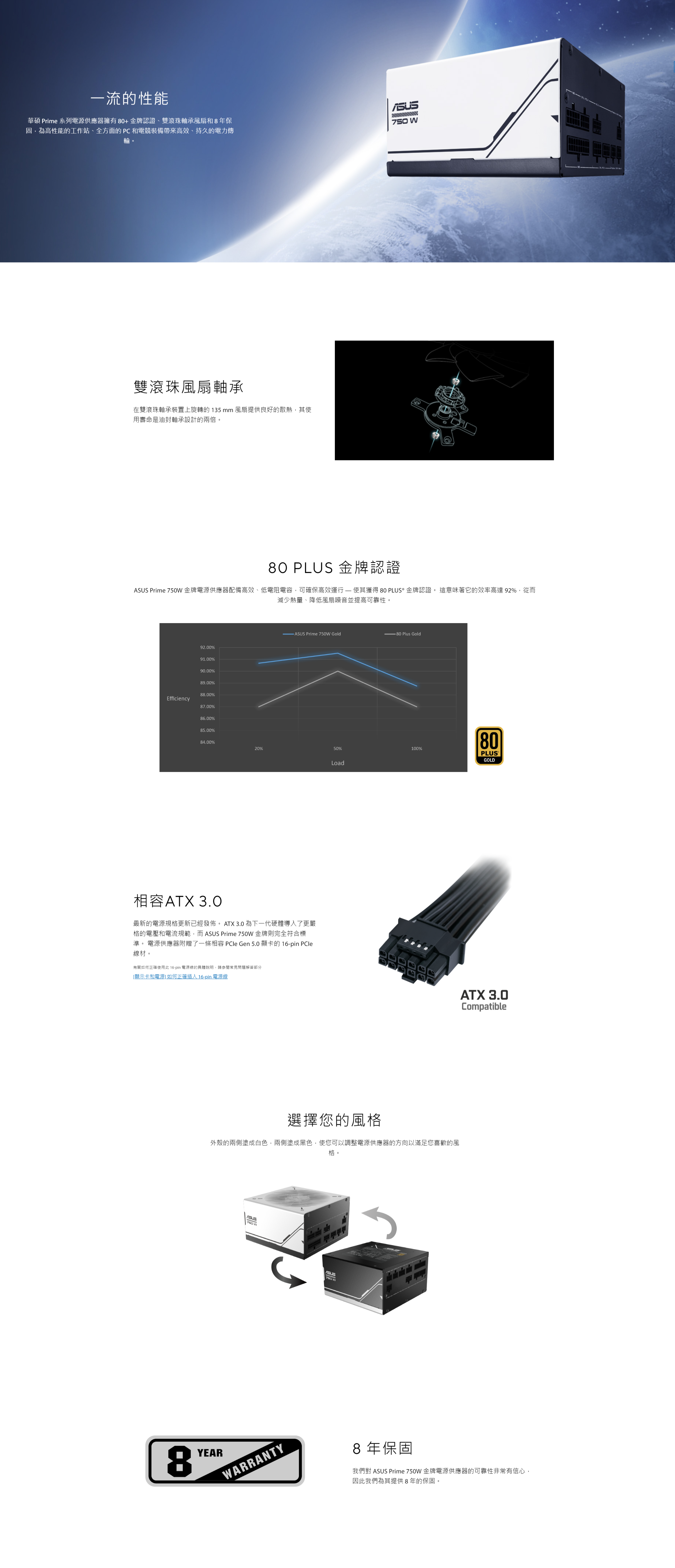 金牌/PCIe 5.0/ATX3.0/全模組/八年保固