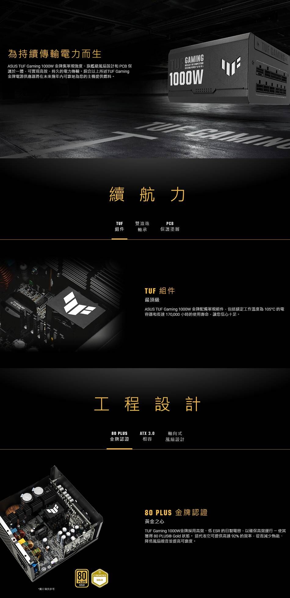 金牌/PCIe 5.0/ATX3.0/雙滾珠風扇/智慧停轉/防潮塗層/全模組/主日系/十年保固