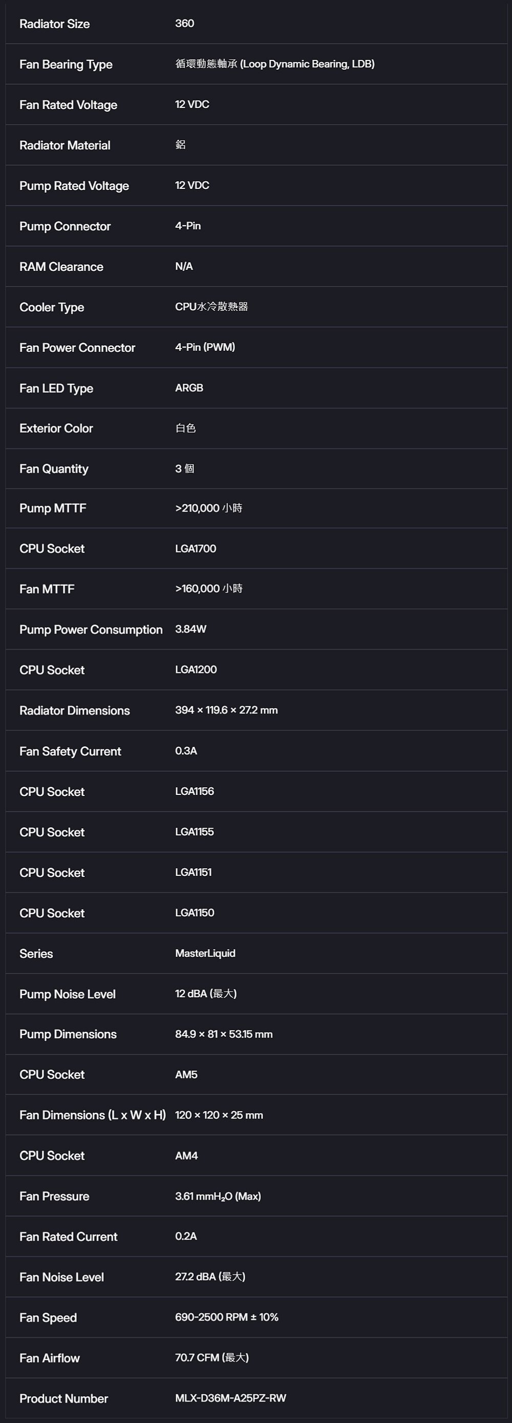 360mm/雙腔冷頭/內含水管夾/12cm風扇*3/五年保