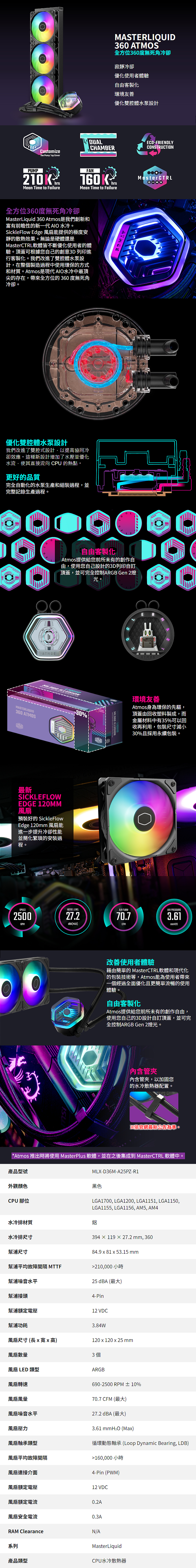 Cooler Master 酷碼 MasterLiquid 360 Atmos ARGB BLACK