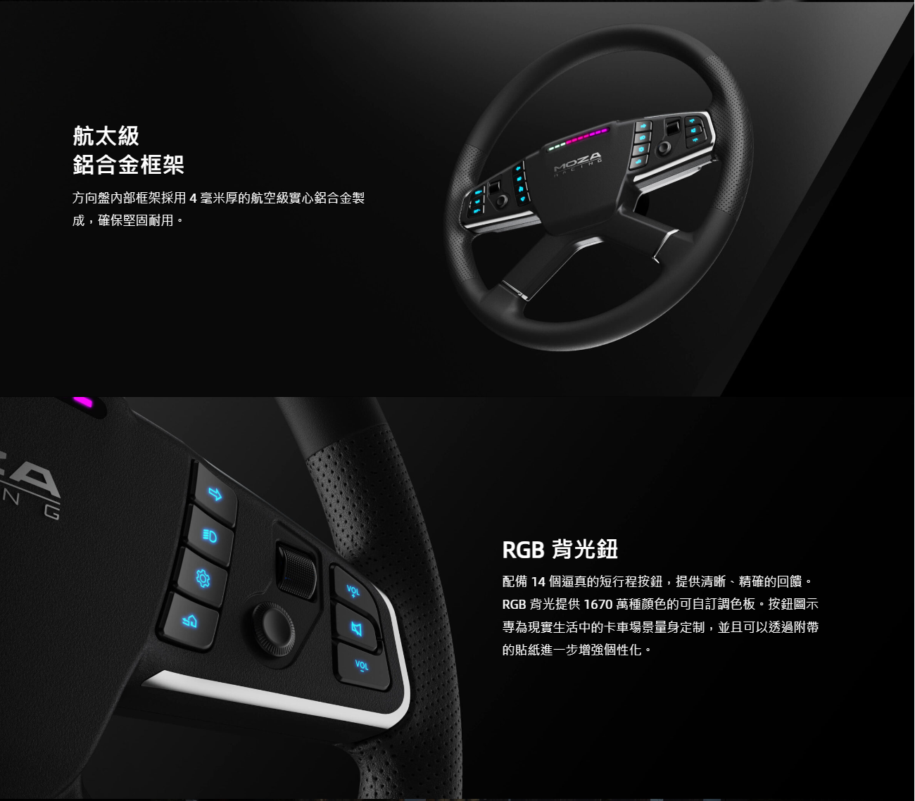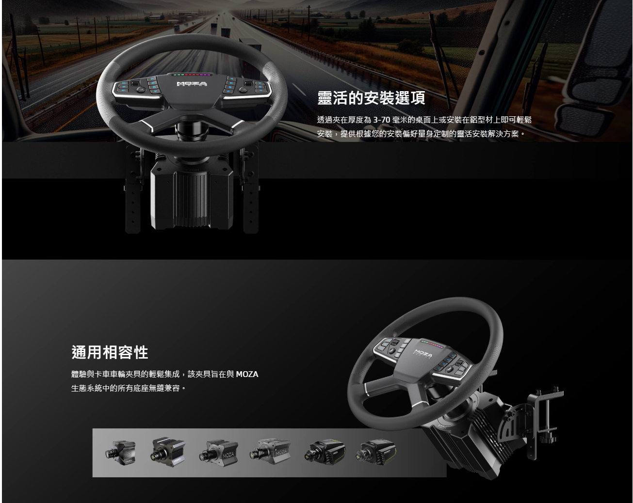 使用MOZA Trucking Bundle提升您的卡車模擬體驗。這套完整的套件包括用於精確力回饋的R5 軸距、具有可增強真實感的可自訂控制的TSW 卡車車輪以及用於實現最佳性能的MOZA SR-P Lite 踏板。此外,隨附的卡車車輪夾可確保牢固連接。 MOZA Trucking Bundle 專為沉浸式真實駕駛而設計,是模擬賽車愛好者的終極解決方案。