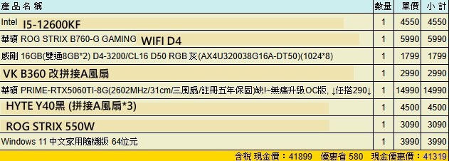 中壢I5-12600KF+PRIME 5060TI O8G展示機(無硬碟)(Y40 黑01)