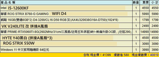 中壢I5-12600KF+PRIME 5060TI O8G展示機(無硬碟)(Y40 黑白01)