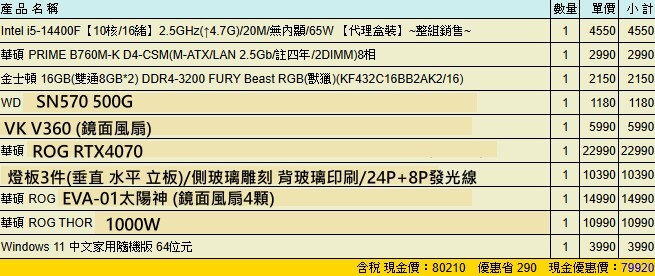 中壢i5-14400F + ROG 4070展示機 (初號機 太陽神)