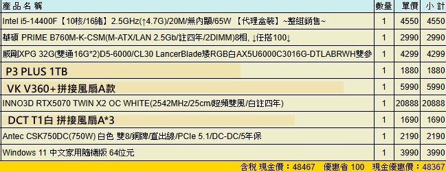 中壢I5-14400F+INNO3D RTX5070展示機(T1白01)